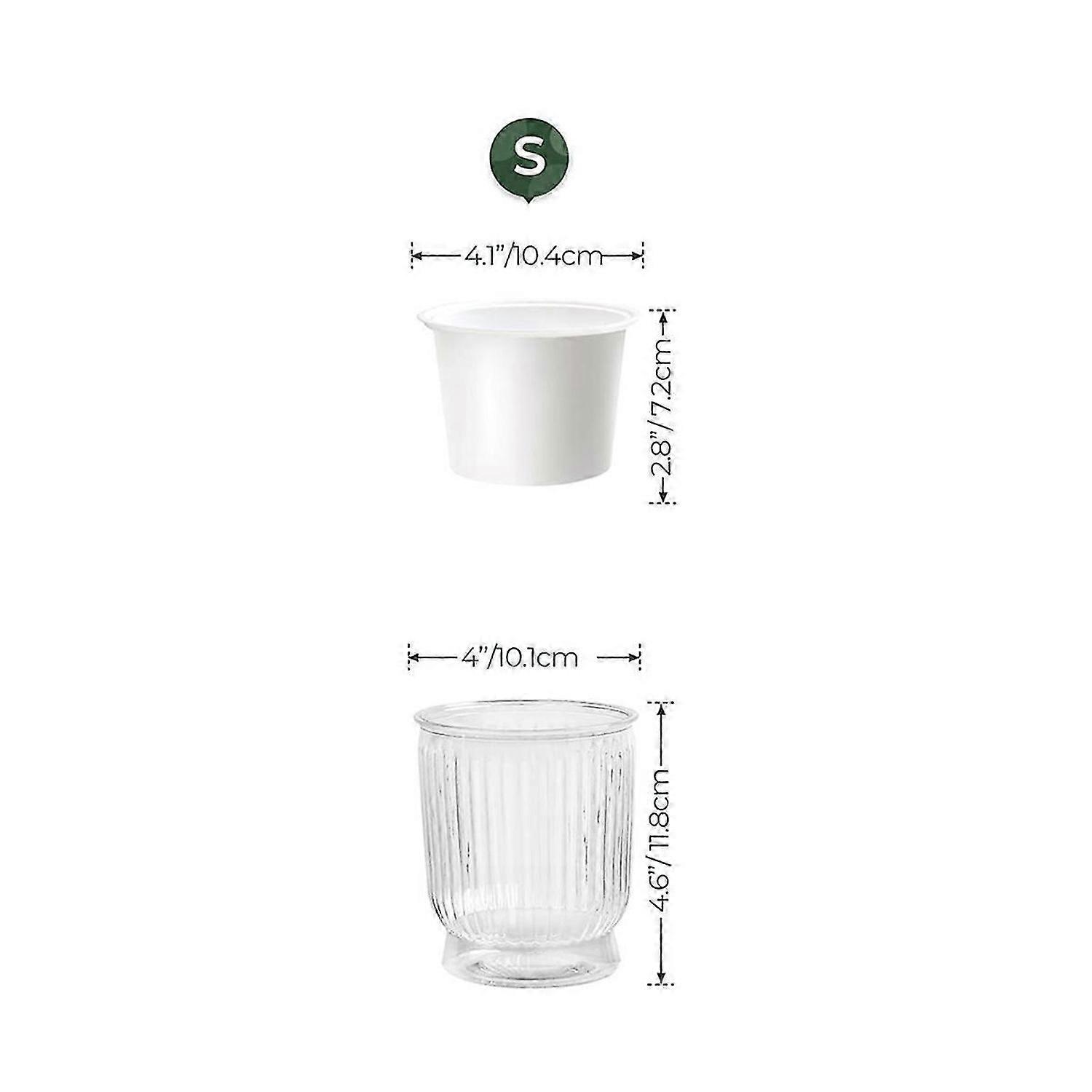 Self Watering Pots for Indoor Plants: These Plant pots feature a cotton rope that absorbs water, keeping the soil consistently moist. This convenient design eliminates the need for daily watering, making it ideal for beginners. Visible Water Level: Crafted from premium, transparent PET material, our flower pots make it easy to monitor the water level. This ensures you never forget to refill the water, maintaining optimal hydration for your plants whether indoors or outdoors. Long-Lasting Water Storage: The innovative double-layer design allows excess water to be stored at the bottom of the clear plastic pot. The water is absorbed by the cotton rope as needed, while the outer pot retains enough water to sustain your plants for 7 to 15 days. This feature is perfect for keeping your plants hydrated while you're away from home. High Quality: Made from new, non-toxic materials, our self-watering planters are free from formaldehyde and resistant to both heat and cold. They are safe, durable, and designed to withstand various environmental conditions. Easy to Use and Maintain: Our flower pots are user-friendly, ideal for both experienced gardeners and novices. They are lightweight, easy to move, and simple to clean-just wipe them down or rinse with water for hassle-free maintenance.<br><br>Colour:Transparent & White Material:Plastic Size:10x12cm<br><br>Package Contents: 4 * Flower Pots<br><br>Only the above package content, other products are not included. Note: Light reflection and different displays may cause the color of the item in the picture a little different from the real thing. The measurement allowed error is +/- 1-3cm.