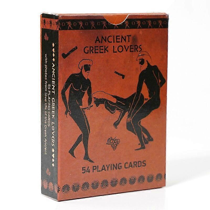 Collectable playing cards with erotic scenes from Ancient Greek pottery. 54 card deck with Ancient Greek Gods. Greek lovers playing card 18+ 54 +2 jokers playing cards plastic coated with printed different erotic scenes and Greek Gods from authentic Ancient Greek pottery. Each card has different image.Great idea as Valentine's day, Bachelor or Hen's party gift or any other occasions.Mature gift - recommended for adults only as many cards has nudity and erotic scenes images.Suitable for poker, bridge, canasta and other games.Gift wrapping available .