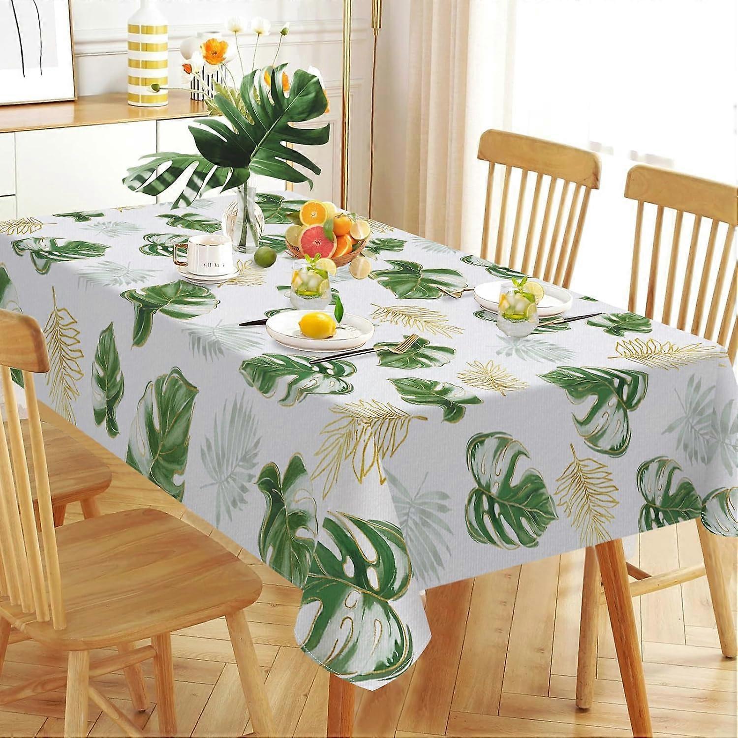 Spring Summer Palm Leaves Monstera Rectangle Tablecloth 60x104 Inch, Tropical Plants Gold Leaf Decorative Table Cloth Dining Table Cover, Hawaii Botan