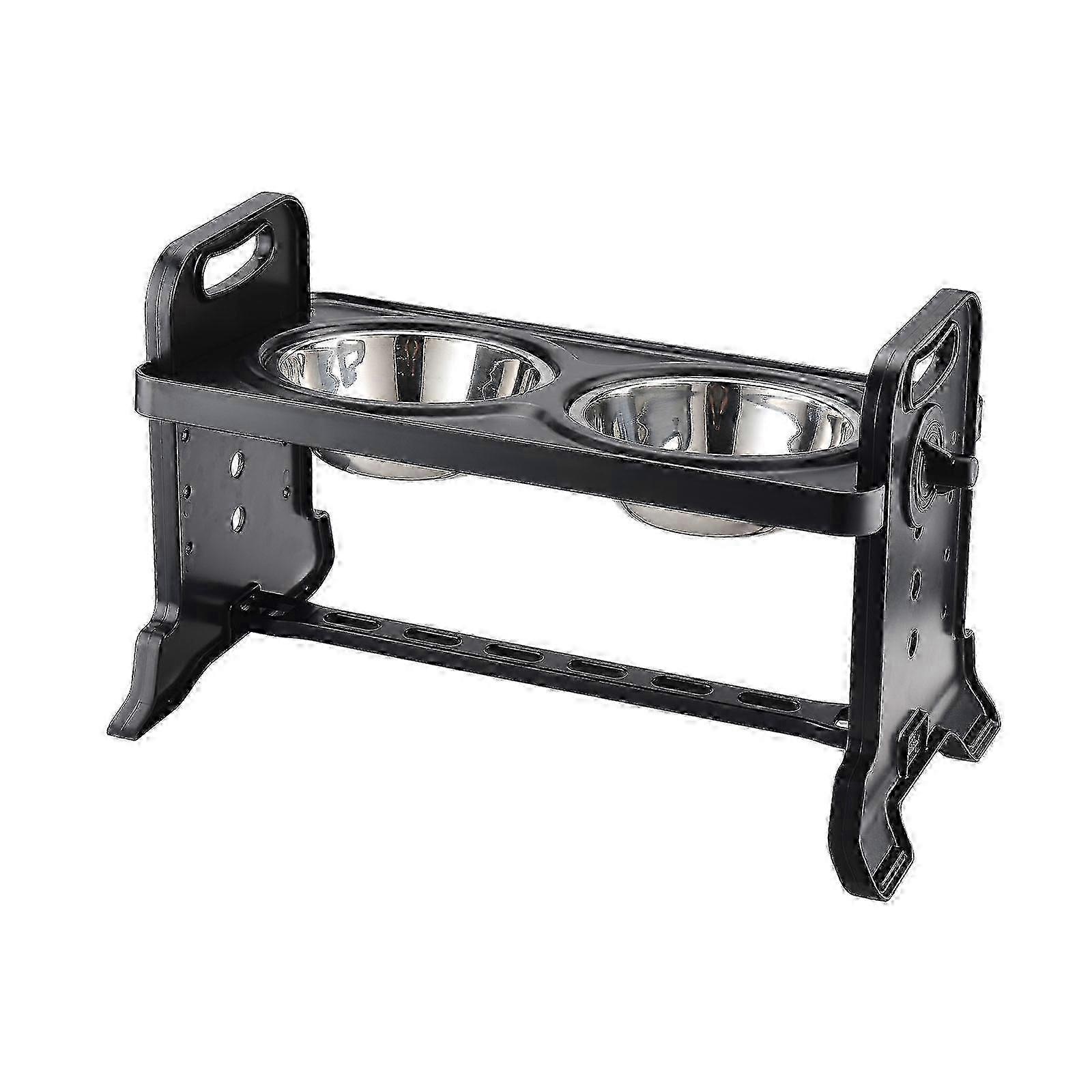 Large Black Pet Bowls - Adjustable Height Stainless Steel Double