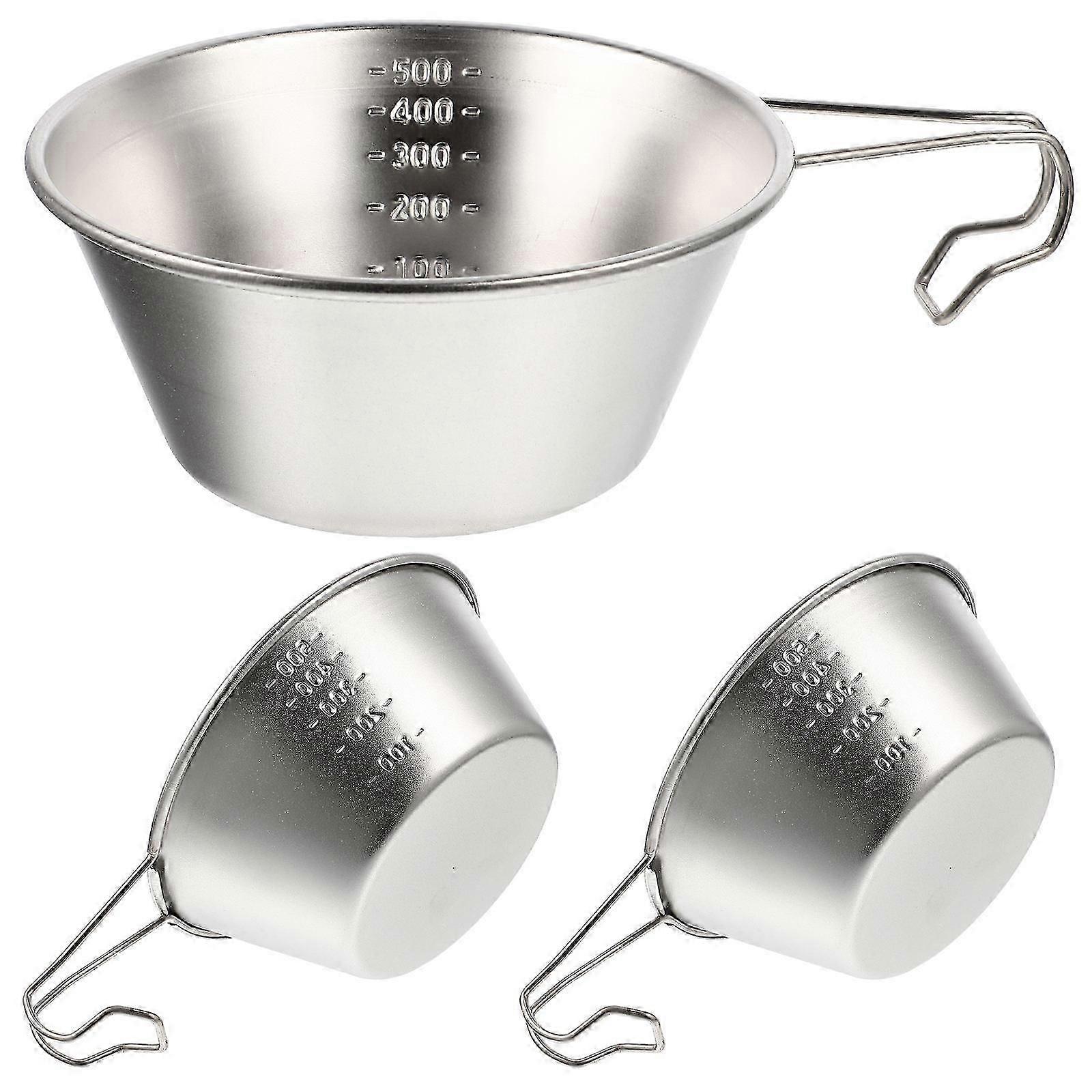 Metal Cereal Bowls Stainless Steel Camping Cookware Portable Outdoor Camping Equipment Silver 19.5X14X6CM 3Pcs