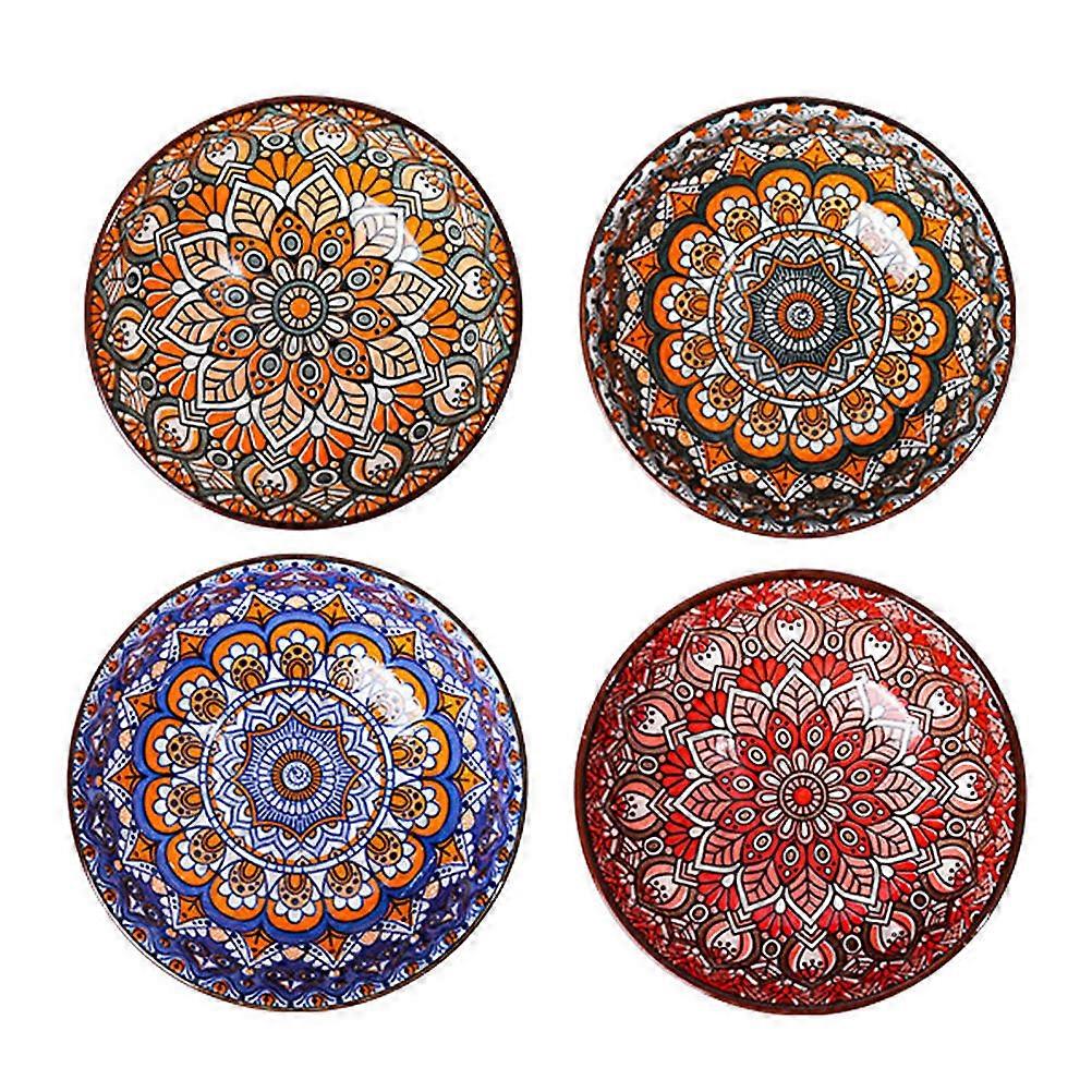 This is a ceramic bowl with Bohemian style pattern. With premium ceramic as its basic material, safe for use and easy to clean. Suitable for rice, dessert, cuisine food and others more. They are very healthy and and suitable for home use. Features -Color: Assorted Color -Material: Ceramic. -Size: About 11.30X11.30X6.00cm/4.44X4.44X2.36in - Made of premium ceramic materials, so can use for a longer time. Suitable for home, restaurants, food shops, catering , etc. - craftsmanship and fine details, beautiful bowl curve. Very easy and convenient to clean, bring much convenience to you. - Big opening design, it is not easy to spill the delicious food. Microwave safe, dishwasher, and you can put it in the refrigerator. - Anti-skid design on the bottom, more stable and practical. They are very healthy and and suitable for home use. - The multi-functional ceramic rice bowl is wonderful size for soups, salads, noodles, grains, pasta, fruits, etc. Package list: 4 x Rice Bowls