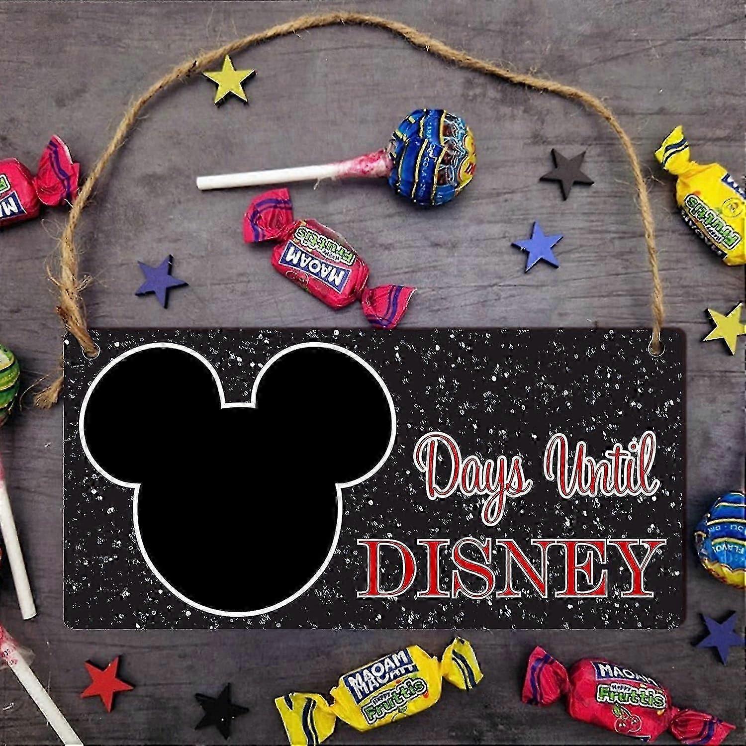 Days Until Disney: Colour Options - Girls Children's Gift, Holiday Countdown Chalkboard Plaque - Modern Rustic Design, Family Vacation Countdown (rect