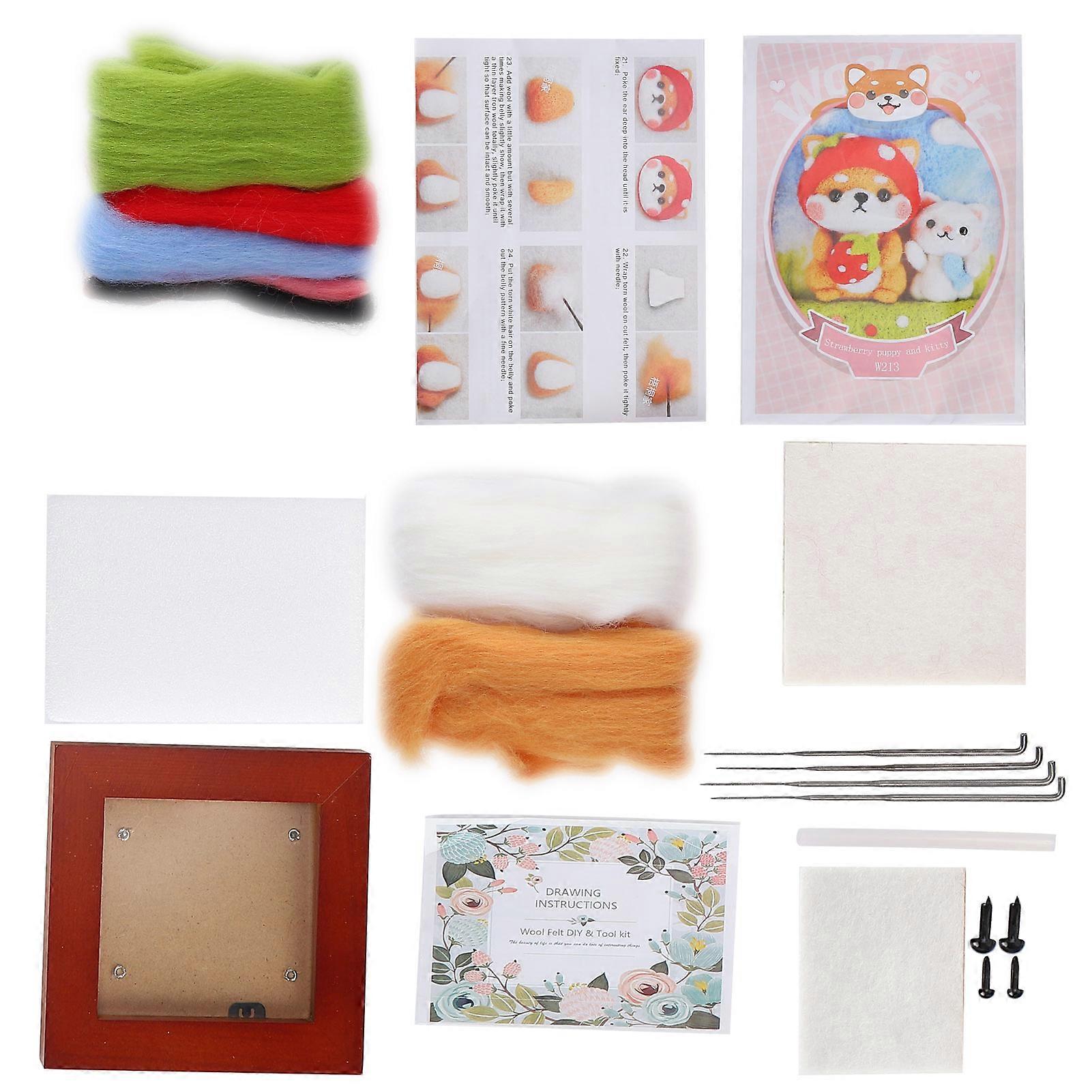 Needle Felting Kit Photo Frame Wool Felting Supplies Animal Plush Doll DIY Materials(Strawberry Dog Cat )