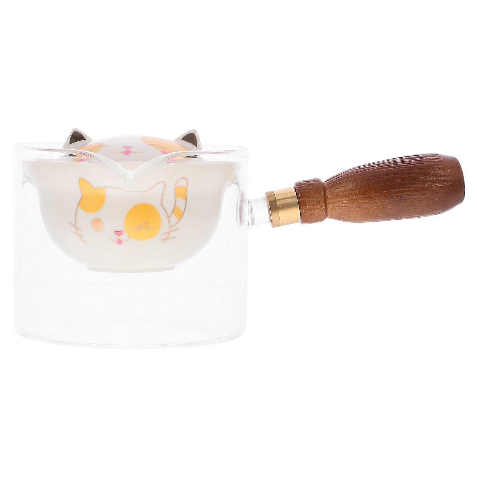 Handheld Teapot Porcelain Tea Kettle Friends Family Tea Lovers Cat Shape Wooden Handle Brewing Tea 1Pack