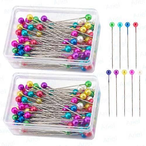 Sewing Needles, 200pcs 1.5 Inch Pearl Straight Needles, 38mm Long Stained Glass Ball Needles Straight Quilting Needles, With Box, For Tailor Jewelry C