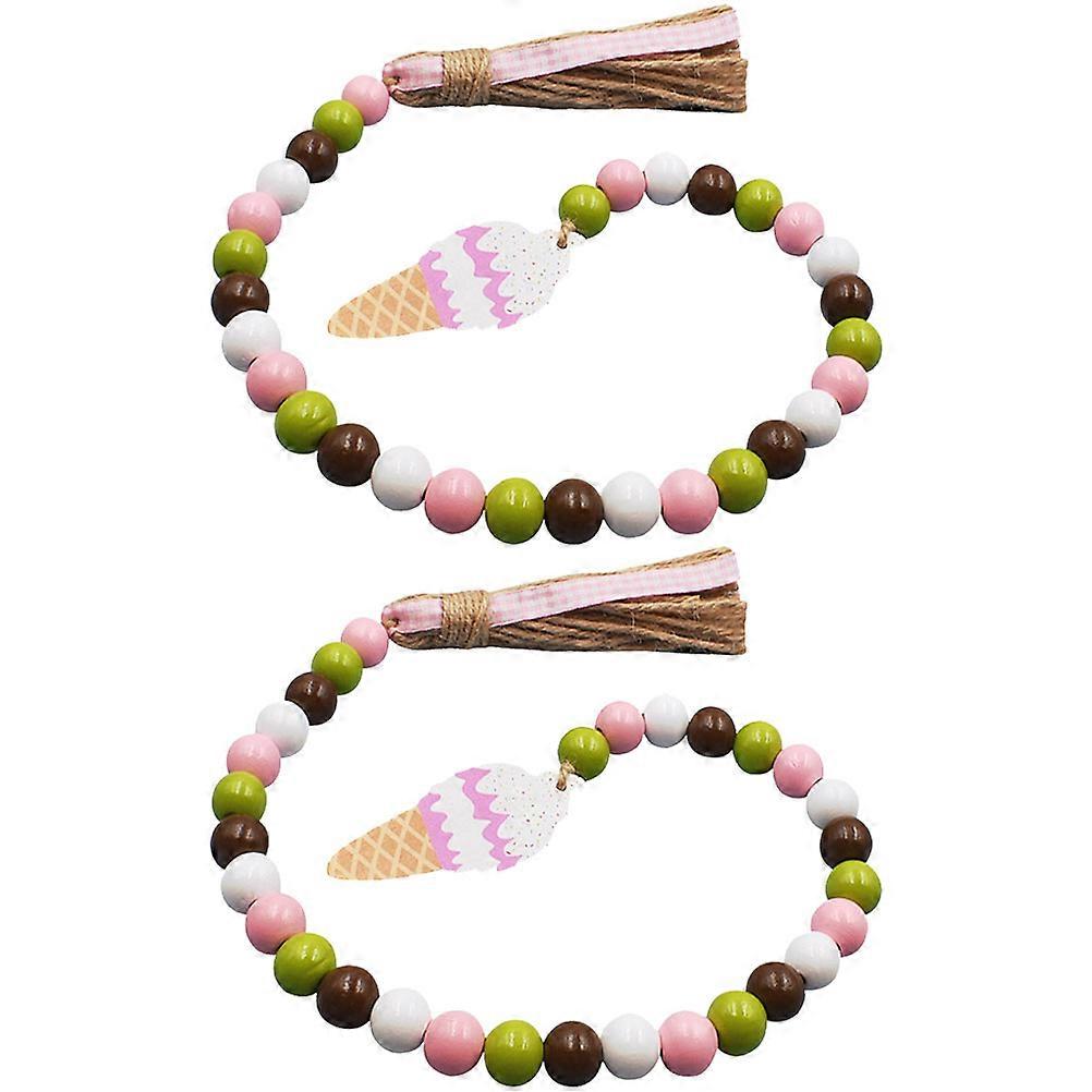 Wood Bead Garland with Tassels for Decor Assorted Color Rustic Home Hanging Decor 2Pcs