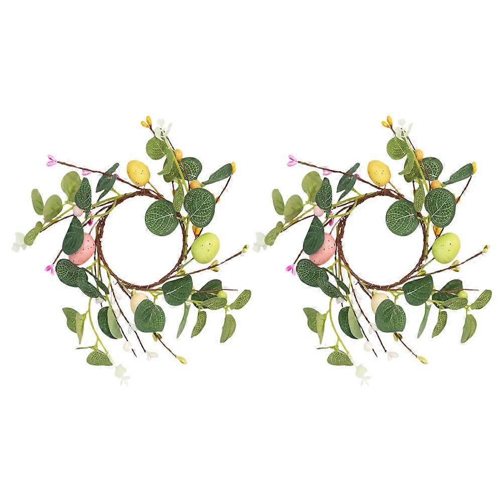 Easter Wreath Garland with Realistic Eucalyptus Leaves and Decorative Eggs for Indoor Outdoor Door Window Holiday Family Decor