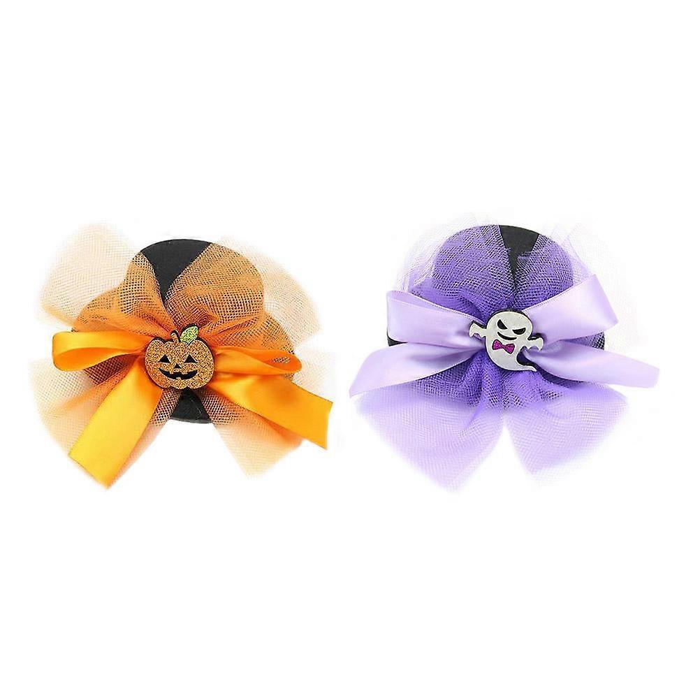 Here's a refined and engaging product description for your **2pcs Halloween Hair Clips with Bowler Hat Design (Purple & Orange Hairpins)**, ideal for