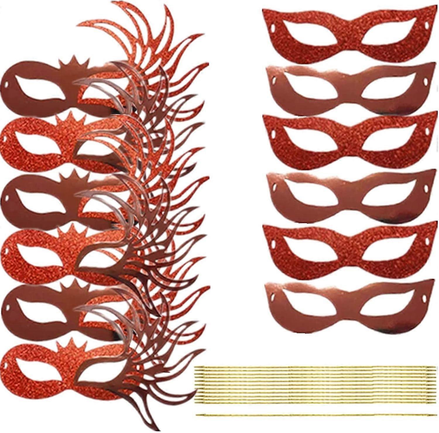 Park of 12 Masquerade Mask for Women Men, Flame Style Glossy Sequins Roman Greek Mythological Mask for Cosplay Party
