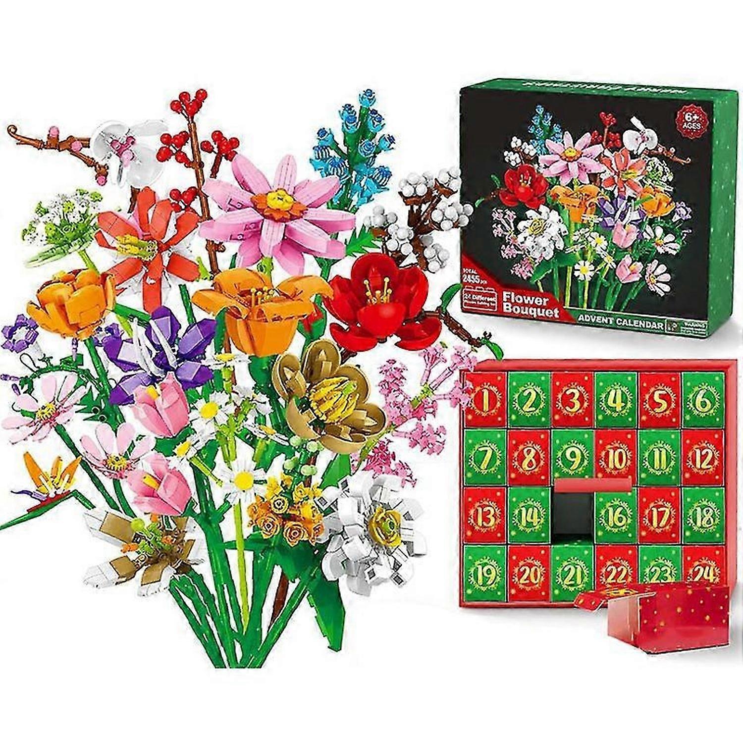 Flower Bouquet Blocks Christmas Advent Calendar, Xmas 24 Days Sunflower Bouquet Blind Box