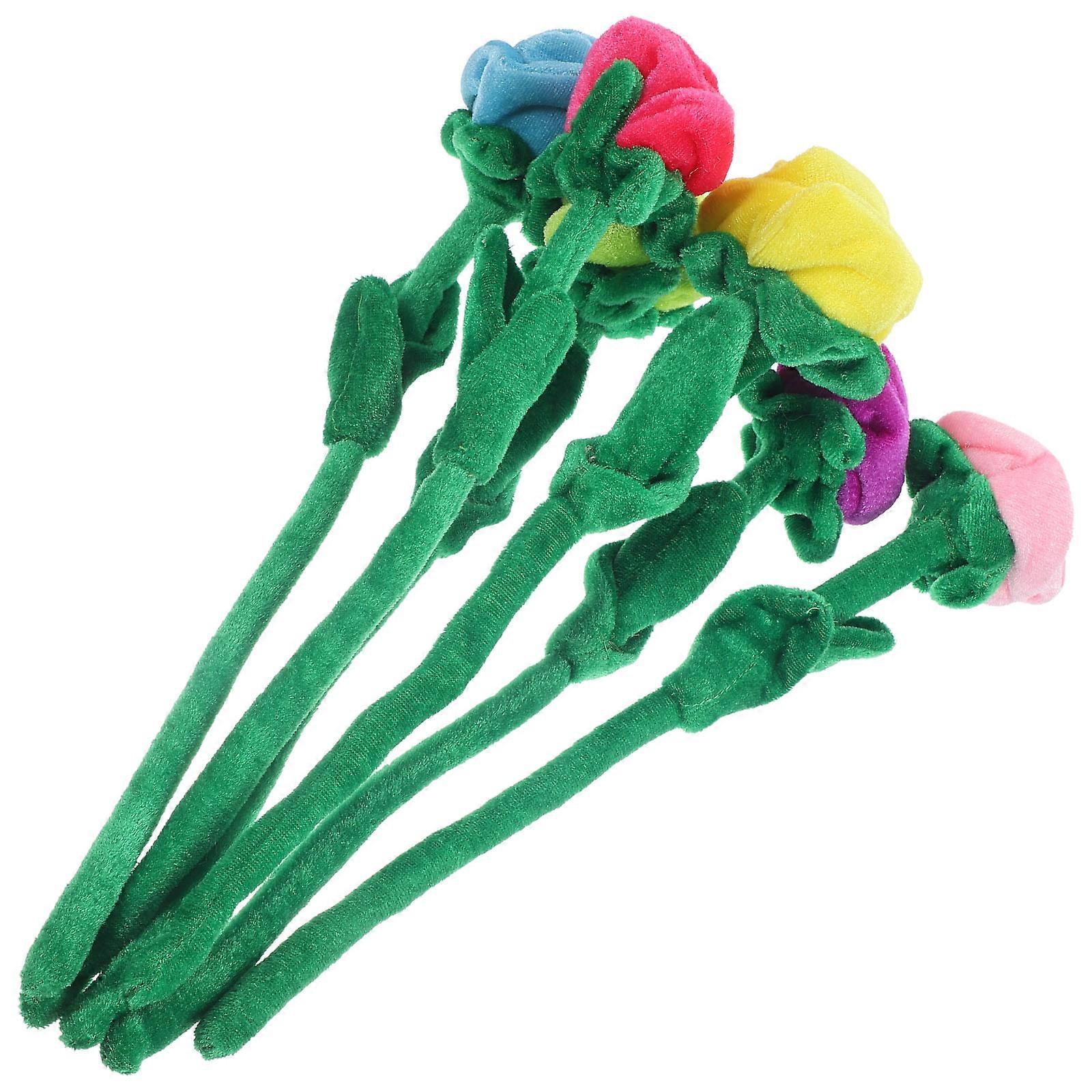Plush Roses Bouquet for Home Decor Assorted Color Bendable Stuffed Flowers 6pcs