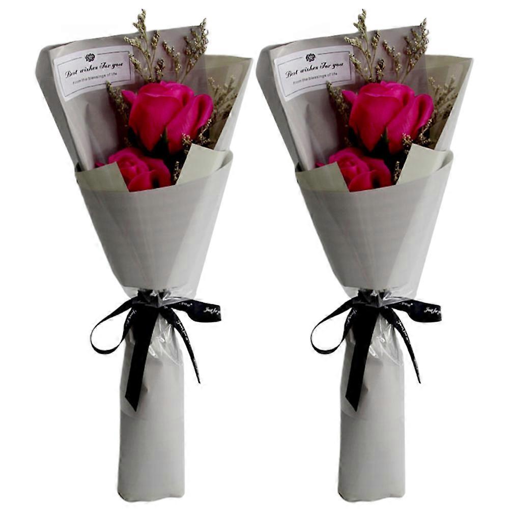 Soap Flower Bouquet With Eternal Flower Design For Family And Friends 34X12X6Cm Rosy 2Pack