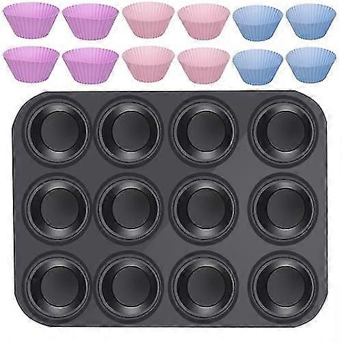 TEFLONPLATTA FR BAKNING AV MUFFINS + 12 SILIKONFORMAR SILIKONFORMAR - silikonrullar fsts p plattan. Formarna r teranvndbara. De tl diskmaskin och mikrovgsugn. De kan ocks frvaras i frysen. Materialet som anvnds vid tillverkningen uppfyller alla standarder fr kontakt med livsmedel. Det viktigaste r att det r skert fr hlsan och smakneutralt. DU KAN BAKA OCH FYSA - silikonformar r tillverkade av ett temperaturbestndigt material och kan drfr anvndas frn -40 grader till +230 grader, vi kan ocks baka muffins och sedan frysa dem utan att ta ut dem ur formarna. 1 2 HL - plten har 12 hl anpassade fr bakning av cupcakes. Materialet som anvnds fr tillverkningen skerstller jmn uppvrmning av tallriken, tack vare vilket degen r vlgjord och sprd. LTT ATT RENGRA - bakform frdig tillverkad av hgkvalitativt stl med Teflon non-stick belggning. Plattan r mycket ltt att rengra. P grund av dess egenskaper rekommenderas inte tvtt i diskmaskin. SPECIFIKATION - frg: grafit; antal silikonformar: 12 st; hlstorlek: topp: 6,7 cm, botten: 4 cm x 3 cm; silikonform: 7 x 3,5 cm; arkmtt: 35 x 26,5 x 3 cm; formens vikt 5g; vikt: 0,357 kg; vikt i frpackningen: 0,417 kg. SPECIFIKATION frg: grafit antal silikonformar: 12 st hlstorlek: topp: 6,7 cm, botten: 4 cm x 3 cm Formens mtt: 7 x 3,5 cm arkets mtt: 35 x 26,5 x 3 cm formens vikt: 5 g vikt: 0,357 kg vikt i frpackningen: 0,417 kg INKLUDERAD: Teflonplatta 12 silikonformar
