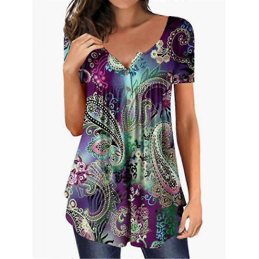 Plus Size Women Short Sleeve T-shirt Summer Casual Loose Tunic Tops