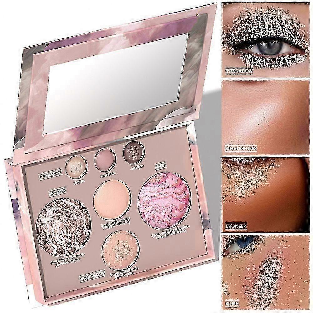 Baked Full Face Makeup Palette with Mirror - Bronzer, Blush, 2 Highlighters & 3 Eyeshadows - Multifunctional Travel Size 7 in 1 Palette Travel & Daily