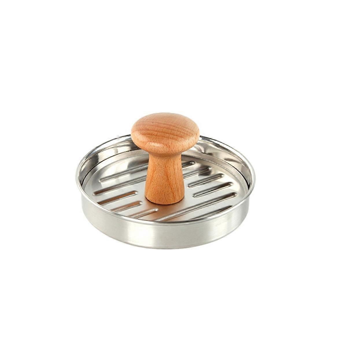 Burger Press 5 Inch Heavy Duty Stainless Steel Hamburger Patty Maker with Wooden Handle