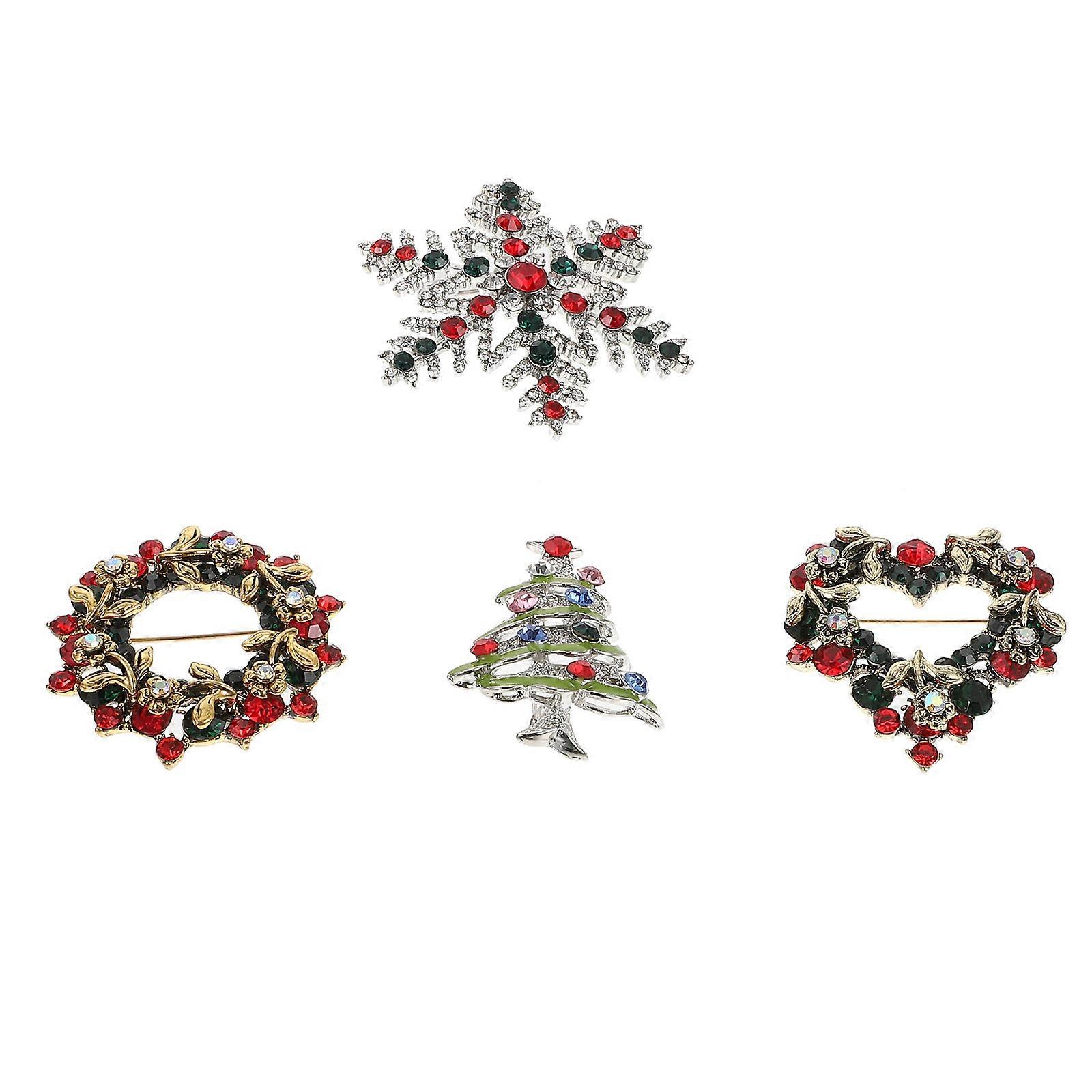 Brooch Holiday Oil Drip Brooch Round Ring Shape Hat Ornament Christmas Decorative 4PCS