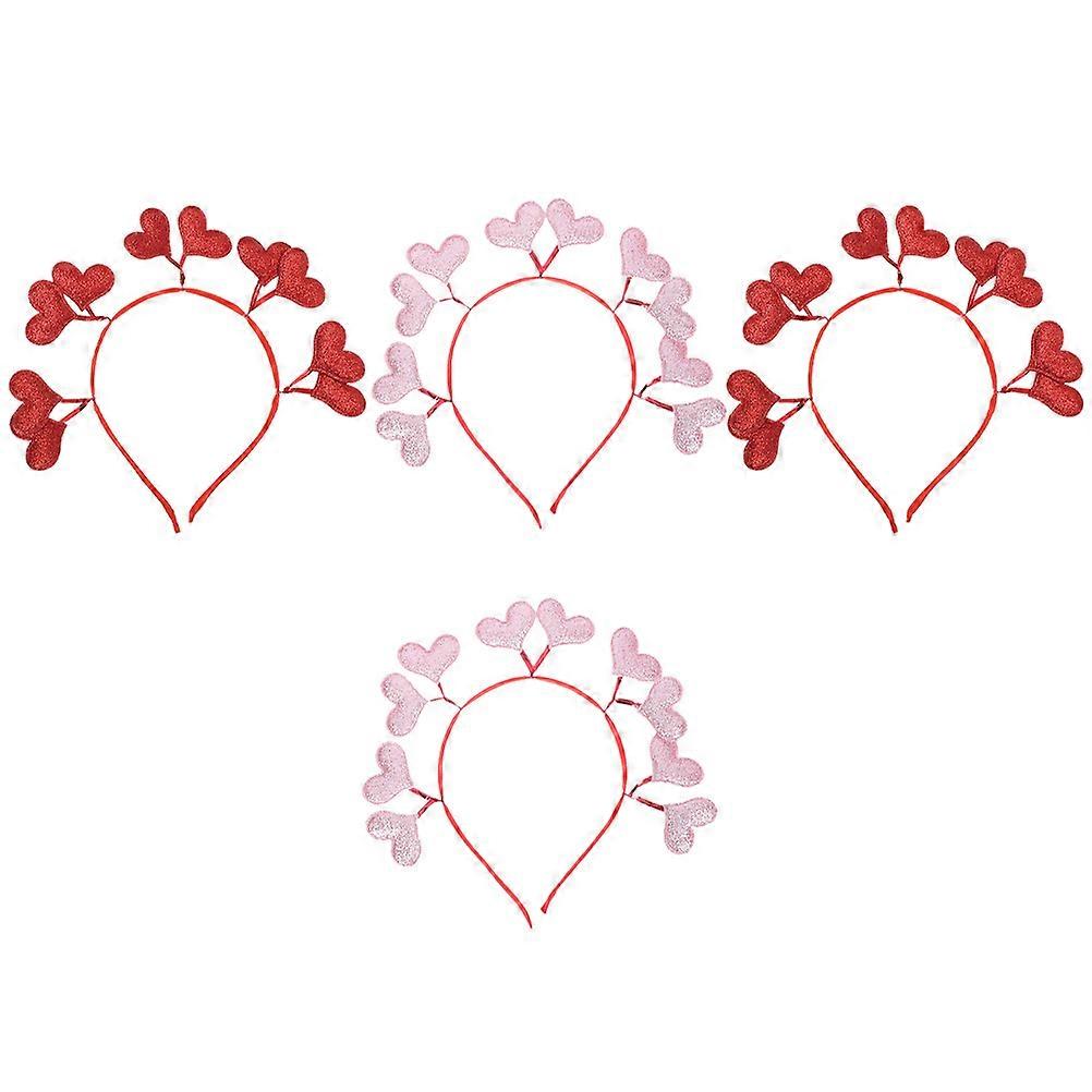 Glitter Heart Headwear Valentine's Day Party Decorations Assorted Color Felt Decorative 4Pcs