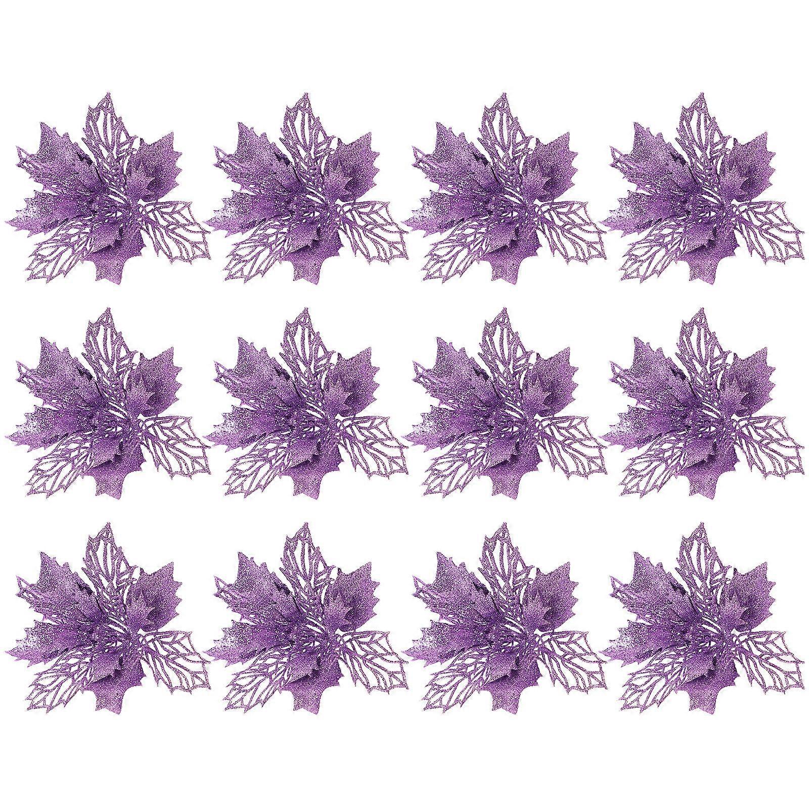 Glitter Hollow Christmas Tree Poinsettia Artificial Floral Decorations for Holiday Season Party Ornaments and Festive Decor