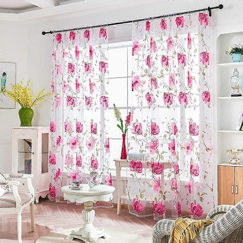 Glitter Flower Leaf Print Voile Curtain Pencil Pleat Sheer Tulle Curtains Panel Window Treatment for Living Room Girls Kids Bedroom