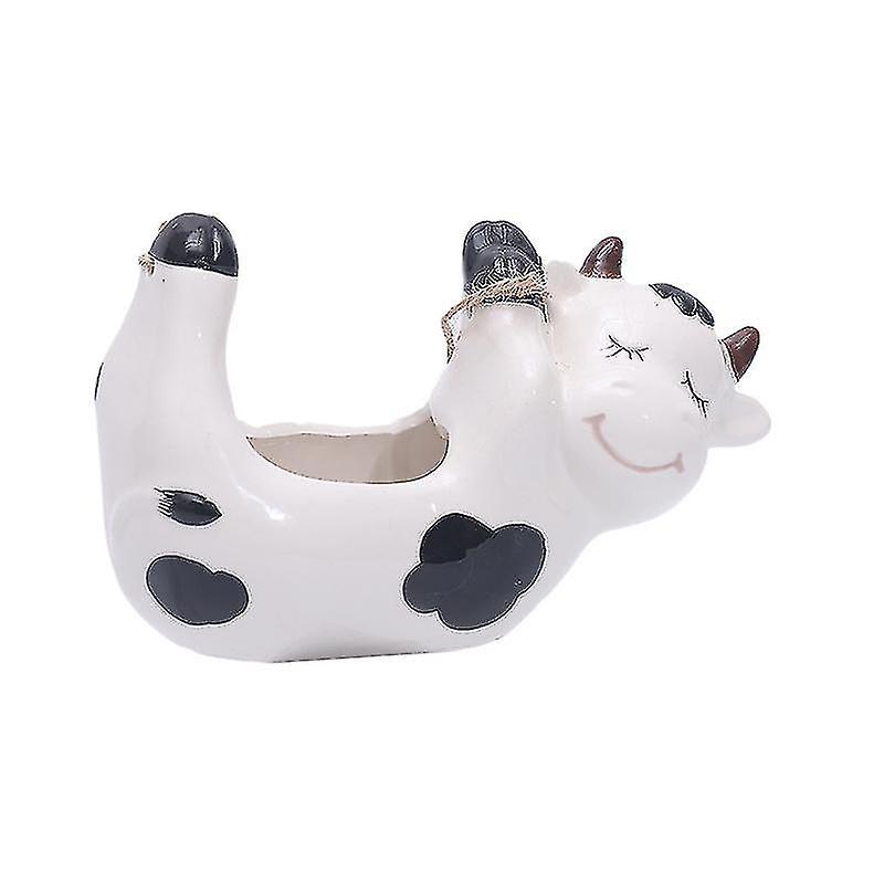 Simple Outdoor Gardening Creative Personality Flower Pot Cow Ceramic Animal Flower Pot Hanging Potted Ornament 1 Piece White Baoji En Vedette
