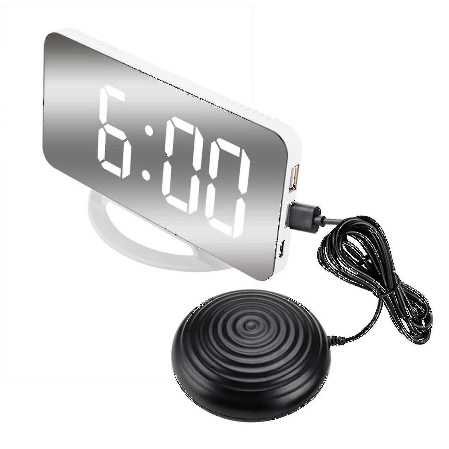 Loud Vibrating Alarm Clock For Heavy Sleepers Adults Deaf, Digital Mirrored Clock With Bed Shaker F