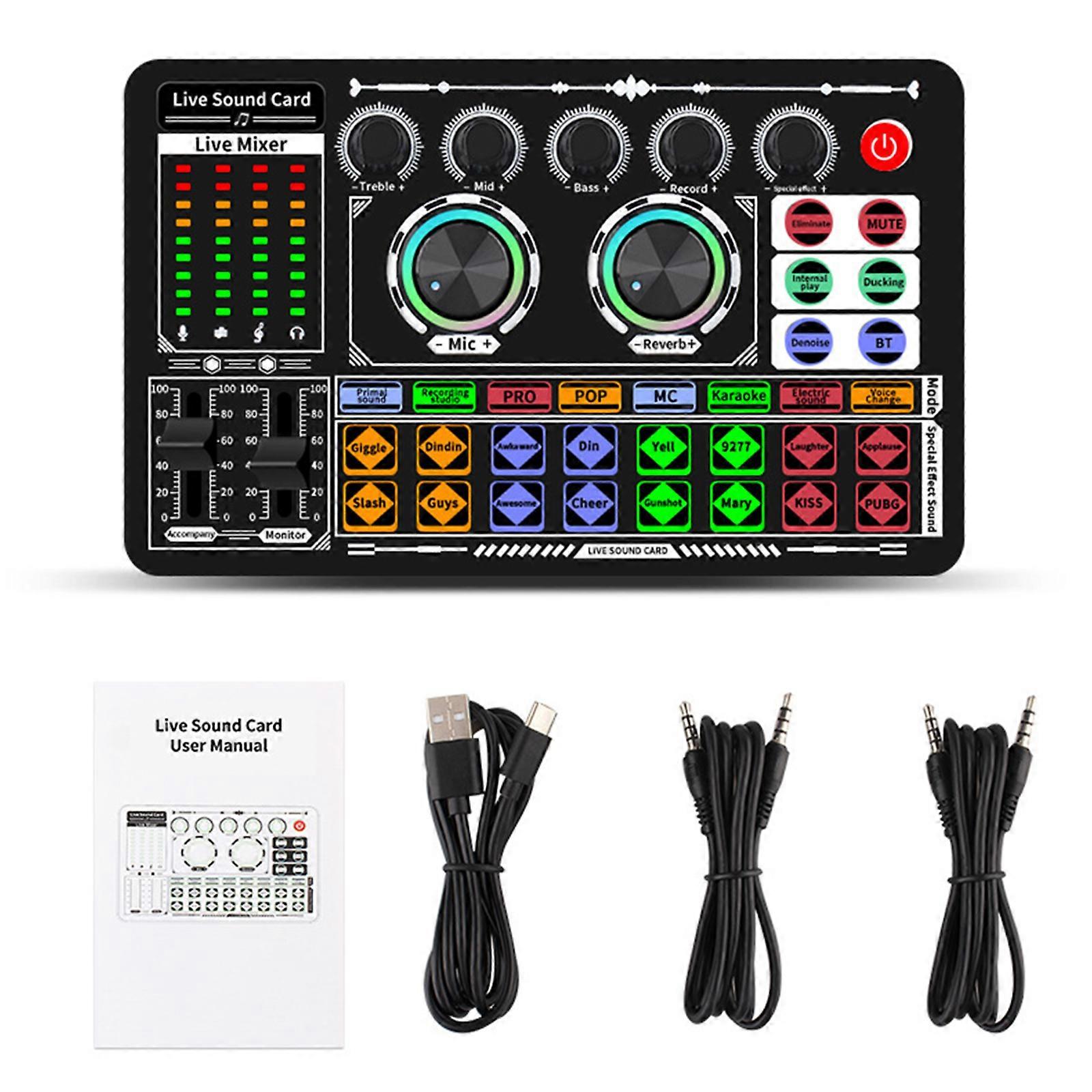 Live Sound Card Sound board Sound Effect Board Audio Mixer for Live Broadcast, K Songs, Live Recording, Home KTV