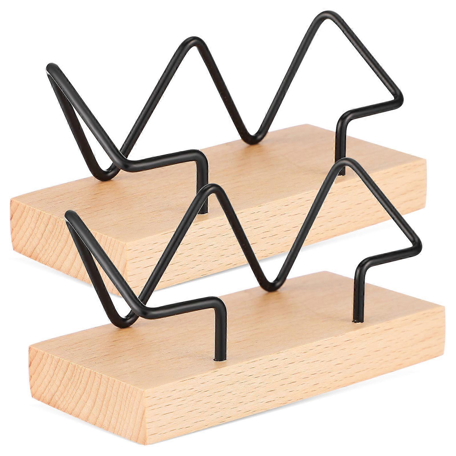 Sturdy Construction Business Card Stand For Desk Wood Metal Wire Frame Office Accessory Horizontal Design 2Pcs