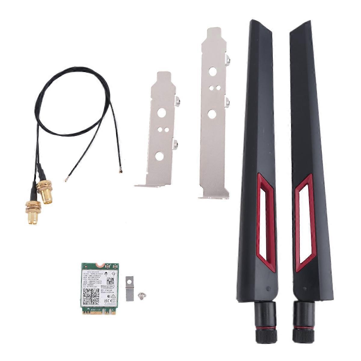 The Wi-Fi 6 M.2 AX210 supports 802.11ax -MIMO over the 2.4 GHz and 5 GHz bands. The maximum throughput supported by the Wi-Fi 6 AX210 is a speedy 2.4 Gbps(160Mhz) AX210NGW supports Bluetooth 5.2 The AX210 can provide Gigabit download speed and dramatically improve your connected experience , work, or . Networking Specifications: Wifi-6 AX210 Bluetooth Wireless Card Model:AX210NGW Bluetooth version:BT 5.2 Interface: NGFF(/E), Frequency Band: 2.4Ghz,5 GHz,6Ghz; Network Standard:802.11AX; 802.11ac; 802.11a/b/g; Max Speed: 2400Mbps on 6Ghz, 2400Mbps on 5Ghz,574Mbps on 2.4Ghz Support: 10, 11 Linux Compatible With: Support almost laptop with NGFF(M.2) interface, such as for , for , for , for , for ; . Not suitable for /// laptop size: 30 x 22mm Material: PCB colour: As shown Package Contents: 1 x AX210NGW network card, 2 x 10DB antennas, 2 x connecting wires, 1 x half-height stand, 1 x full height bracket Only the above package content, other products are not included. Note: Light and different displays may cause the color of the item in the picture a little different from the real thing. The measurement allowed error is +/- 1-3cm.