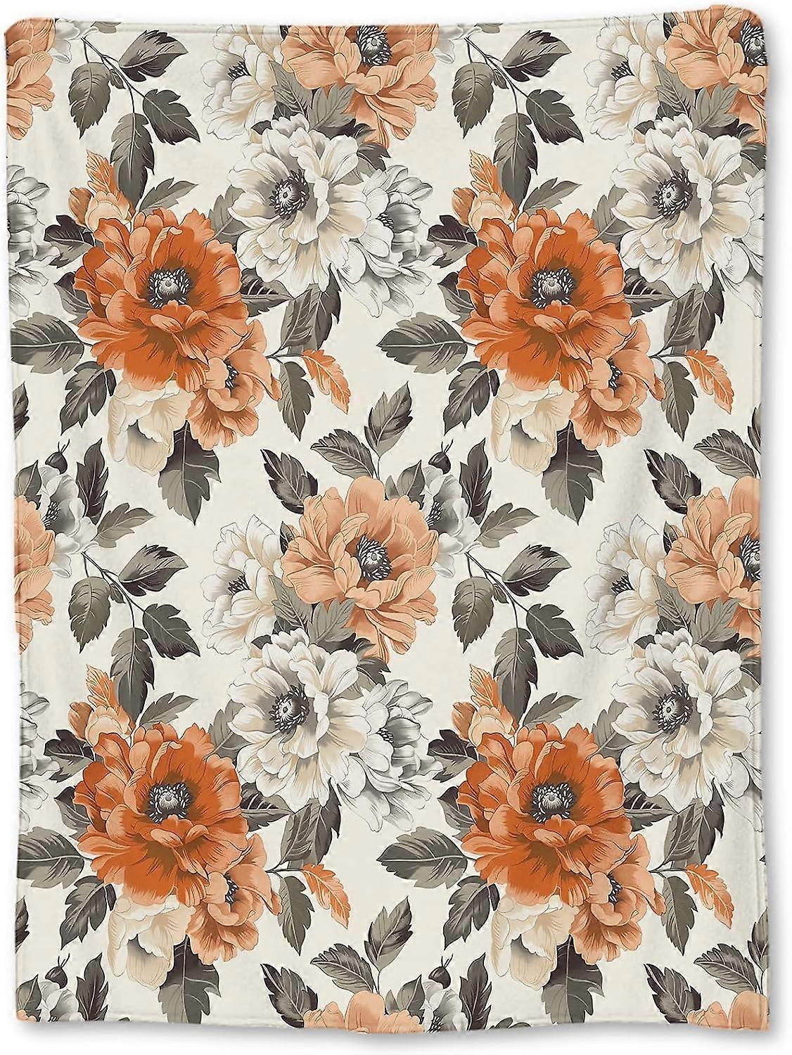 Classic Floral Elegance Blanket, Soft Lightweight Flannel Throw for Couch, Bed, Travel, Living Room & Home Decor, Cozy Warm Fuzzy Blankets for Adults