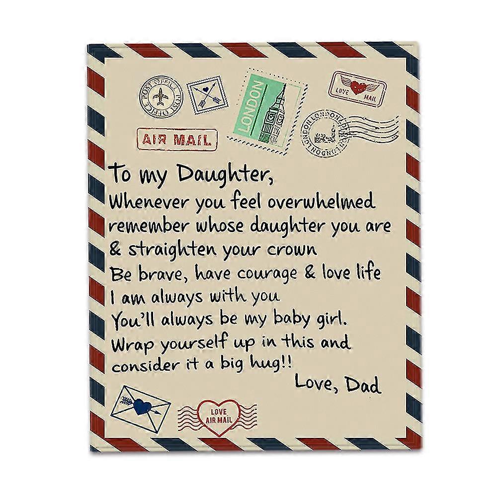 Fleece Blanket, To My Daughter Letter Printed Quilts, Dad For Daughter's Air Mail Encourage Quotes Flannel Blanket