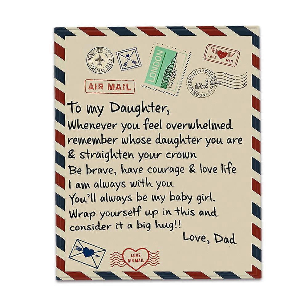 Fleece Blanket, To My Daughter Letter Printed Quilts, Dad for Daughter's Air Mail Encourage Quotes Flannel Blanket