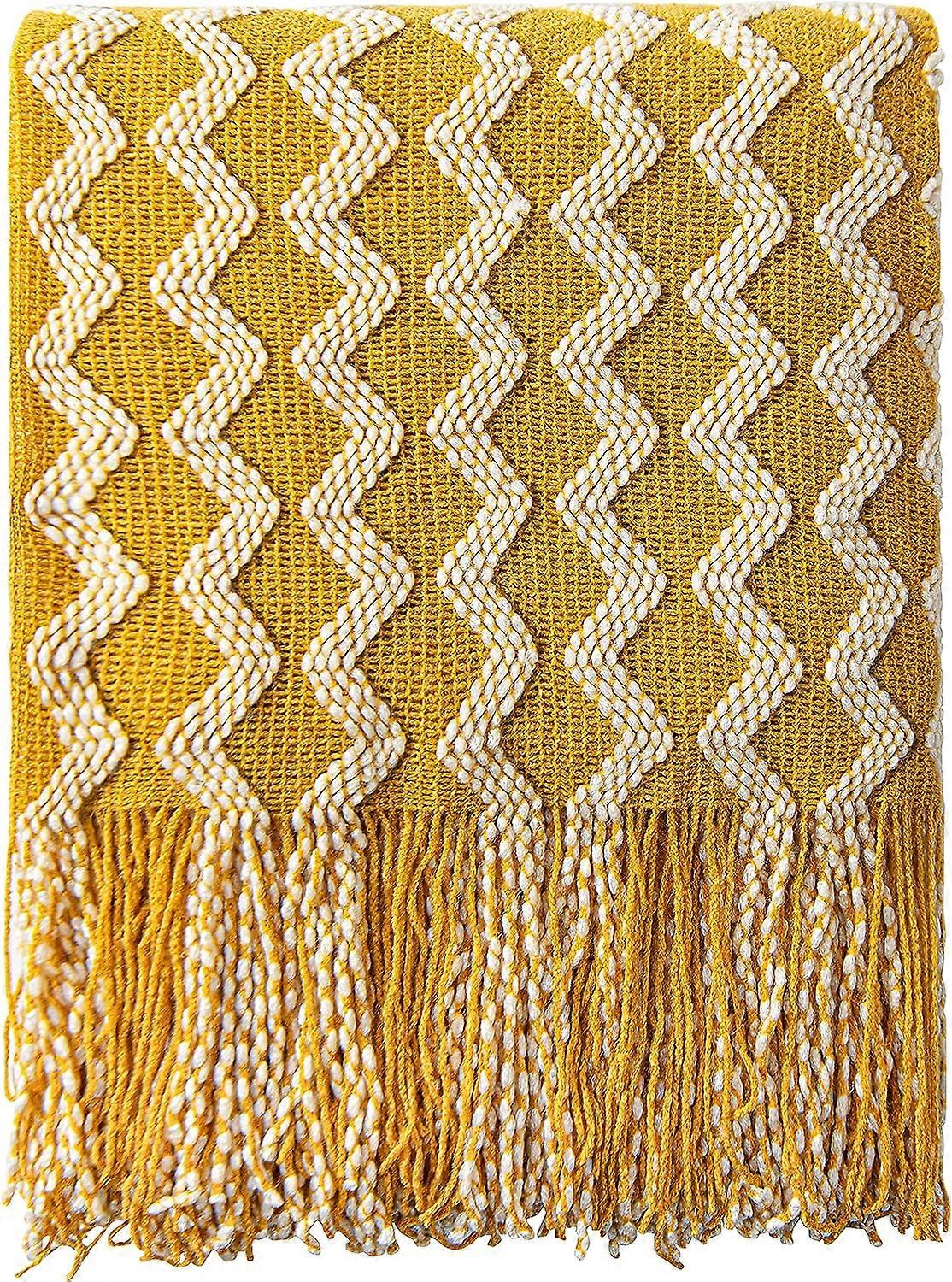 Acrylic knitting blanket, light and soft decorative knitting blanket, with tassels, suitable for travel, sofa, bed, sofa, 51x67 inches, mustard yellow