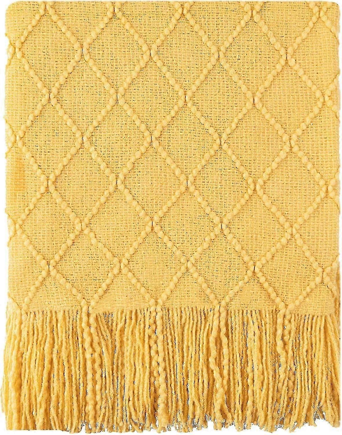 Yellow Throw Blanket Diamond Pattern Indoor Outdoor 50"x60" Soft Light Weight Knitted Throws-QJWL