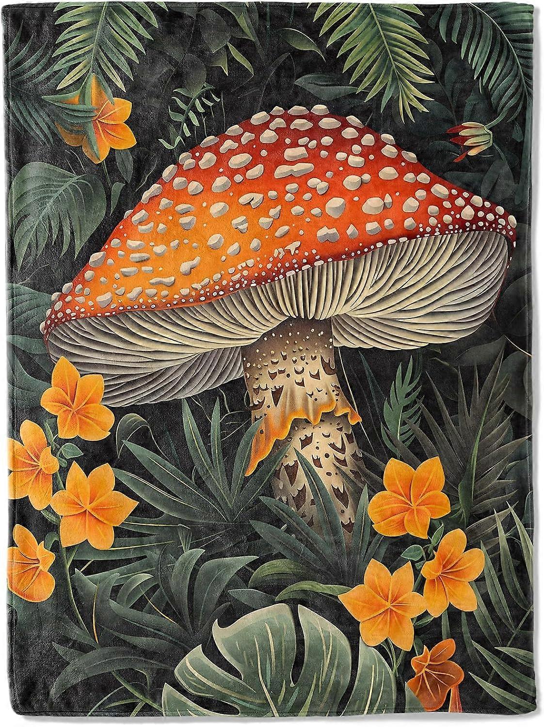 Funny Mushroom Blanket - Super Soft, Cozy, Lightweight Flannel Throw - Warm, Anti-Pilling Fleece Blanket for Couch, Bed, Office, Travel, Unisex 8060in