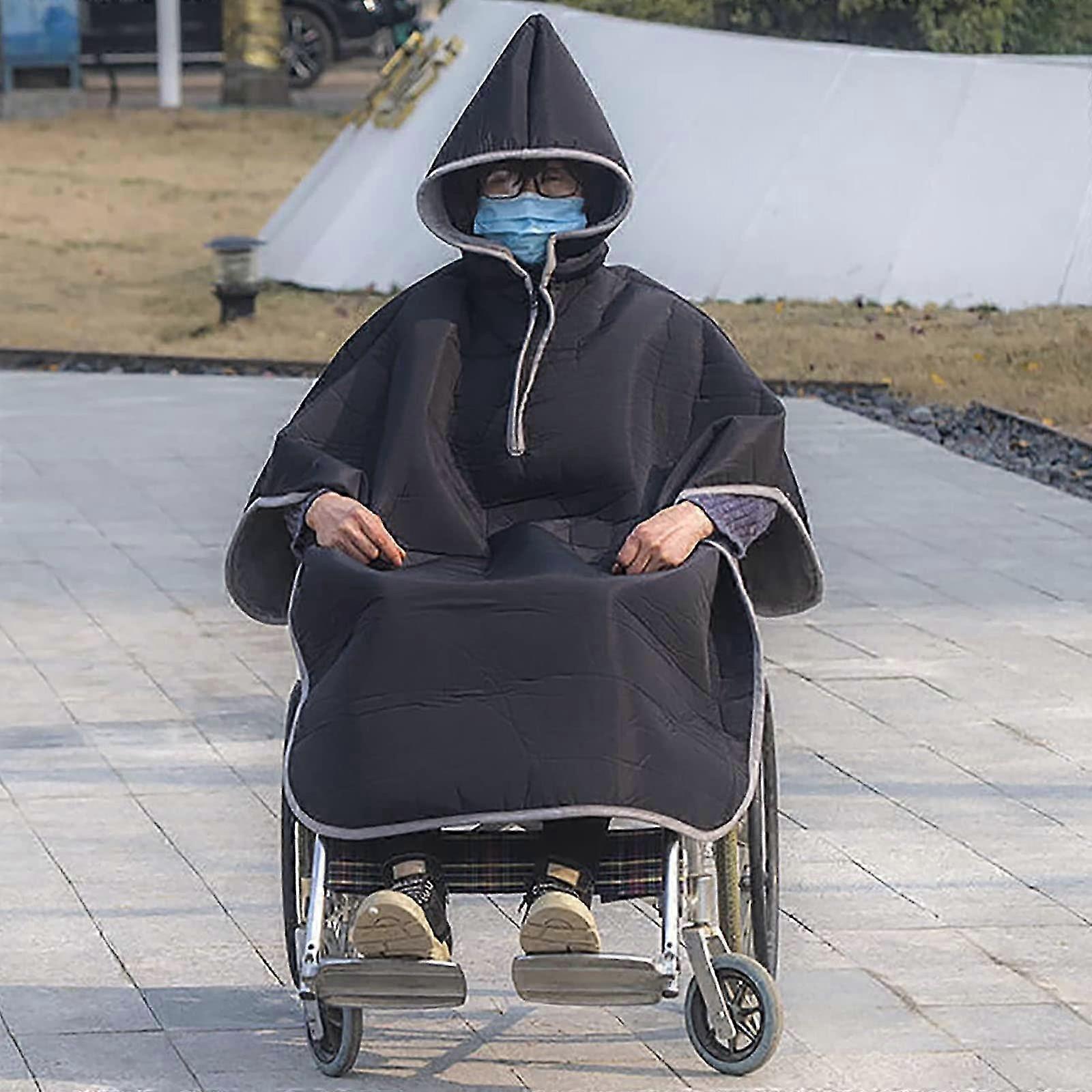Wheelchair Blanket Warm Winter Full Body Coverage, Windproof Hooded Poncho, Thermal Travel Blanket, Color A