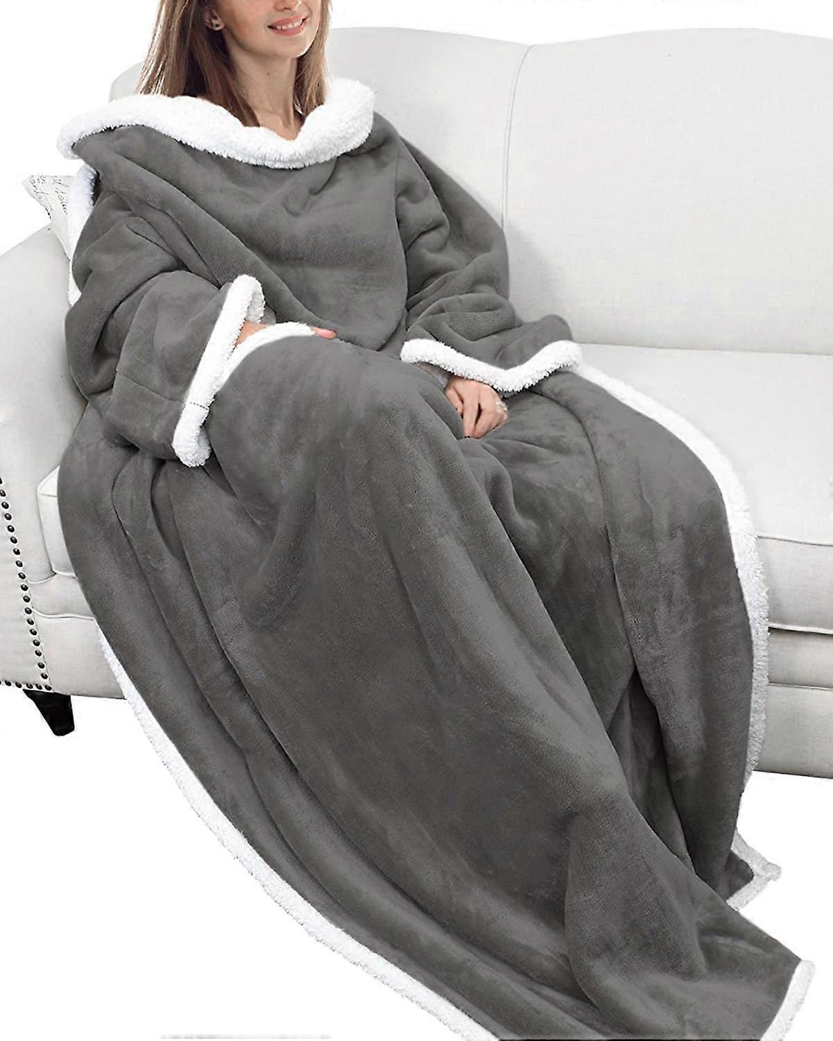 Fleece Blanket with Sleeves and Pockets, Flannel Sleeve Plaid Gift for Women, Blanket with Soft and Warm Sleeve, 180 x 140cm, Gift Idea for Men and Wo