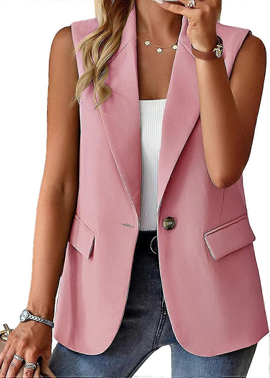 Sleeveless Blazer Jackets For Women Solid Color Open Front Women Blazer Vest Casual Lapel Cardigan With Pockets
