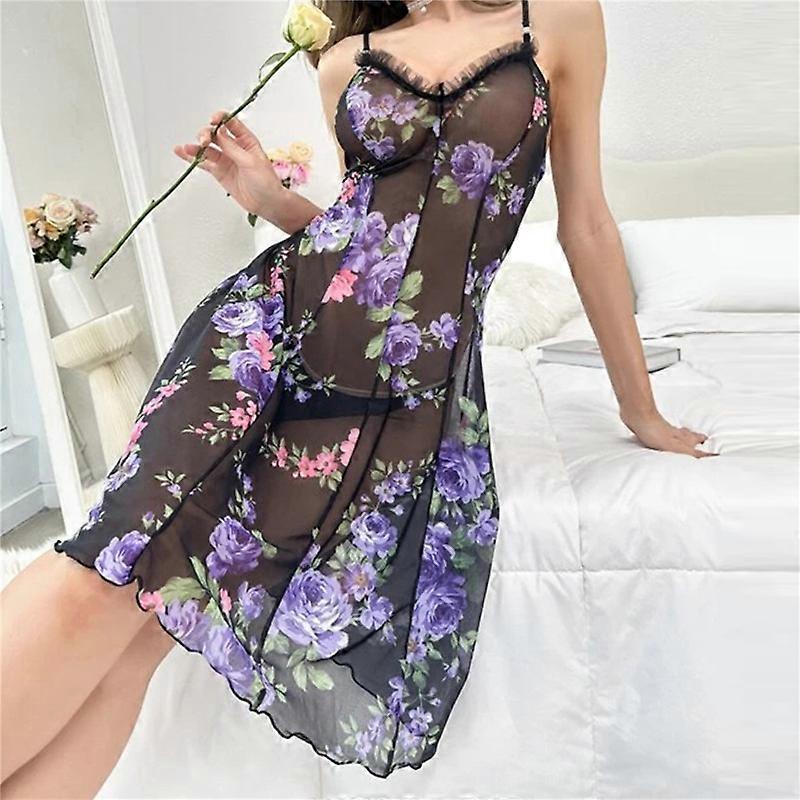 Sleeveless Floral Nightgowns Women Transparent Sleep Dress Lace Sexy Nightdress See Though Night Wears Female Nightie Pajamas