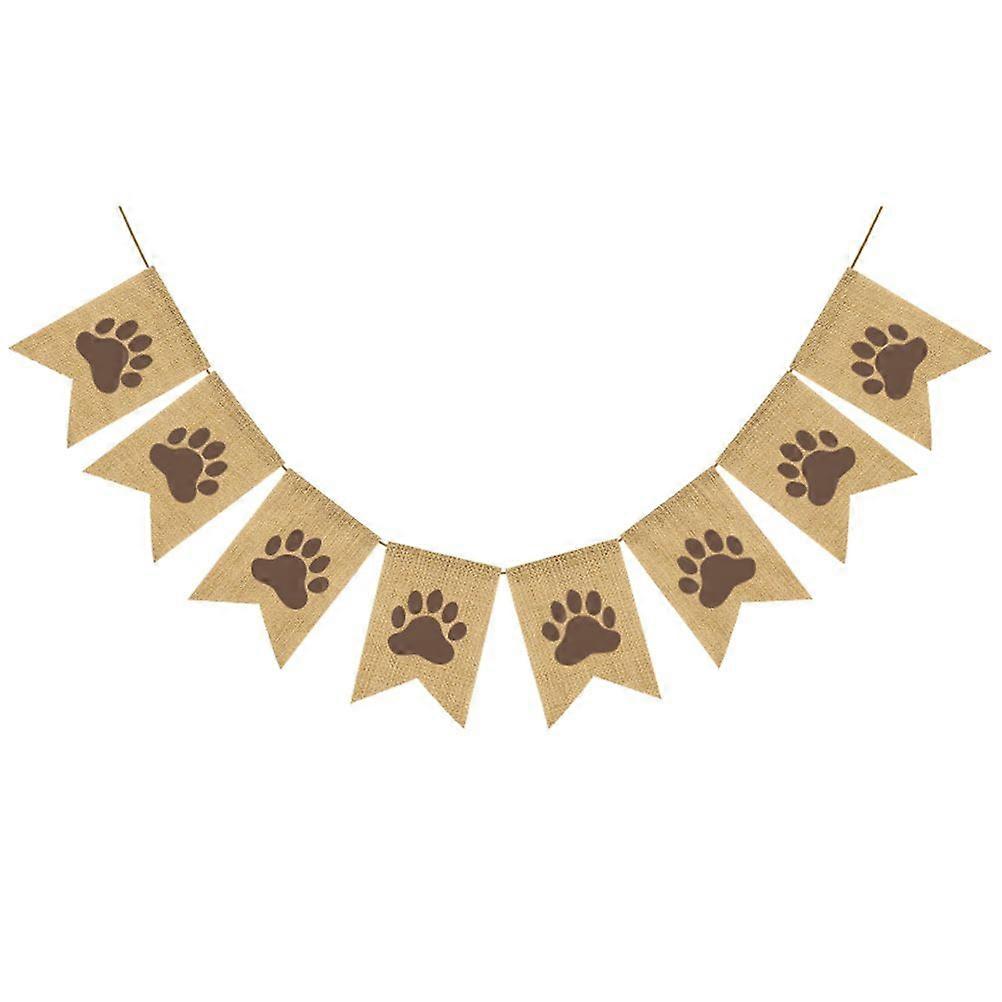 Animal Pawprint Burlap Banner Creative Footprint Swallowtail Garland Bunting Flag Linen Dovetail Shape Animal Party Supplies