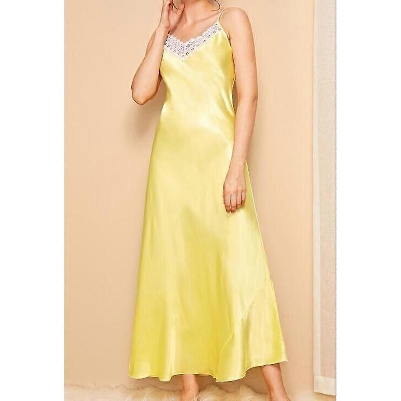 Solid Color Simulated Silk Sling Extra Long Nightdress Ladies Lace Sexy Pajamas Summer Comfortable Homewear
