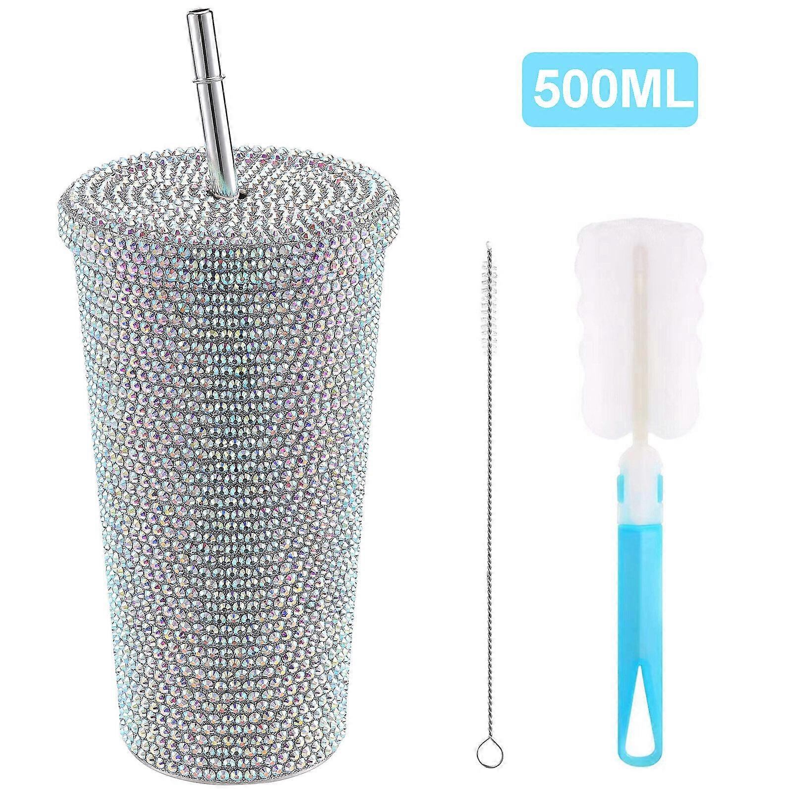 Bling Diamond Tumbler Rhinestone Thermal Cup 500 Ml/17 Oz Large Capacity 21.5 X 6.5 X 10 Cm Gift Multicolor Water Bottle
