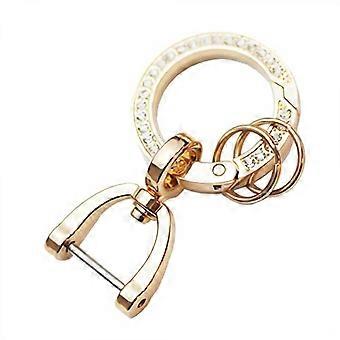 Bling Rhinestone Keychain for Car Key, 14k Gold Plated Alloy Stirrup Buckle Keyring for Women men, Gold