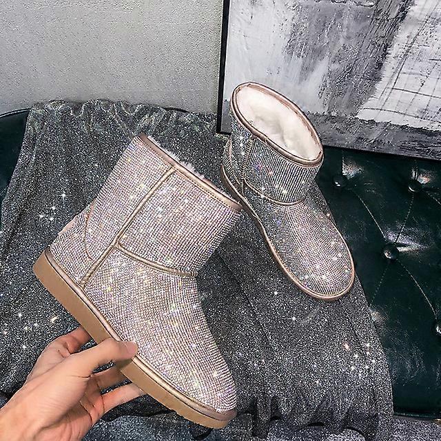 bling crystal snow boots women silver glitter beading winter ankle booties plush padded platform botas mujer big size 34-43 NS69