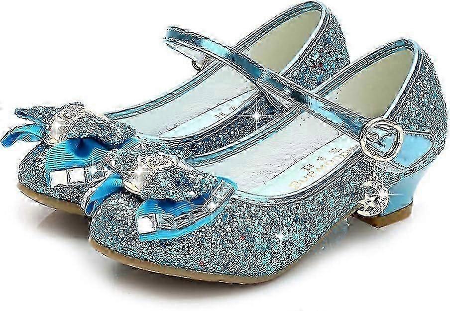 Girls Diamante Bowknot Sequin Princess Shoes Kids Low Heel Court Wedding Party Sandals Glitter Dance Mary Jane