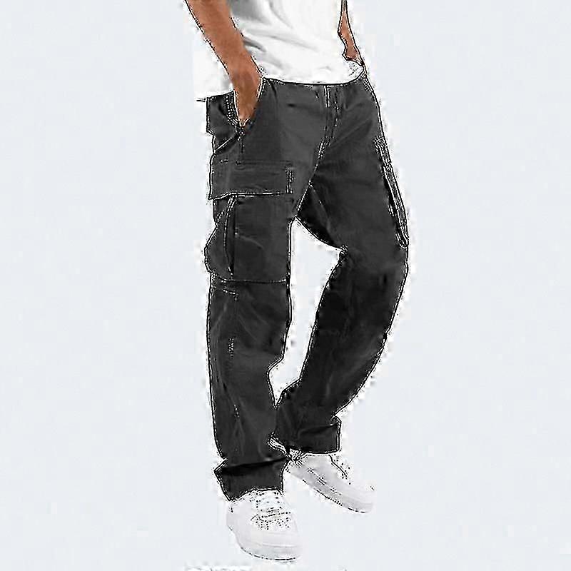 Men's Cargo Pants with Multi-Pockets, Ribbon Accents, Streetwear Sweatpants for Casual Wearzz29