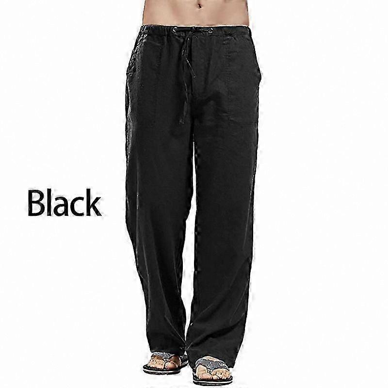 Men's Cotton Linen Straight Leg Trousers, Elastic Waist, Solid Color, Loose Fit, Summer Casual, 5XL