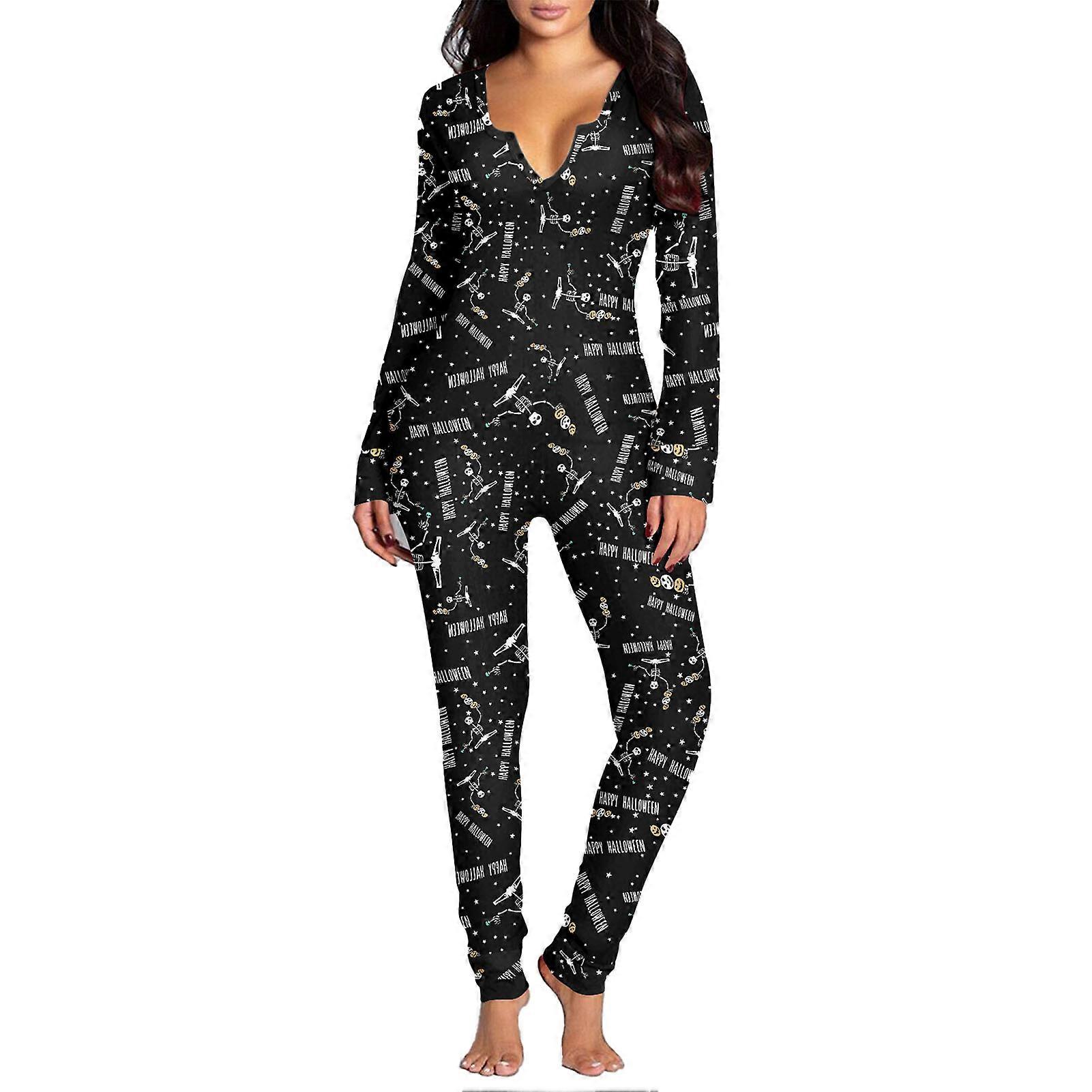Long Pants Printed Bodysuit V Neckline Slim Fitted Halloween Printed Bodysuit for Home L 2