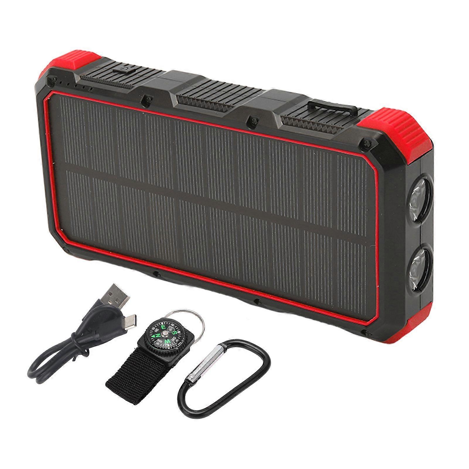 Solar Power Bank 36800mAh Quick Charging 3 USB Portable Solar Charger with LED Light for Outdoor Camping 5V 3A Red